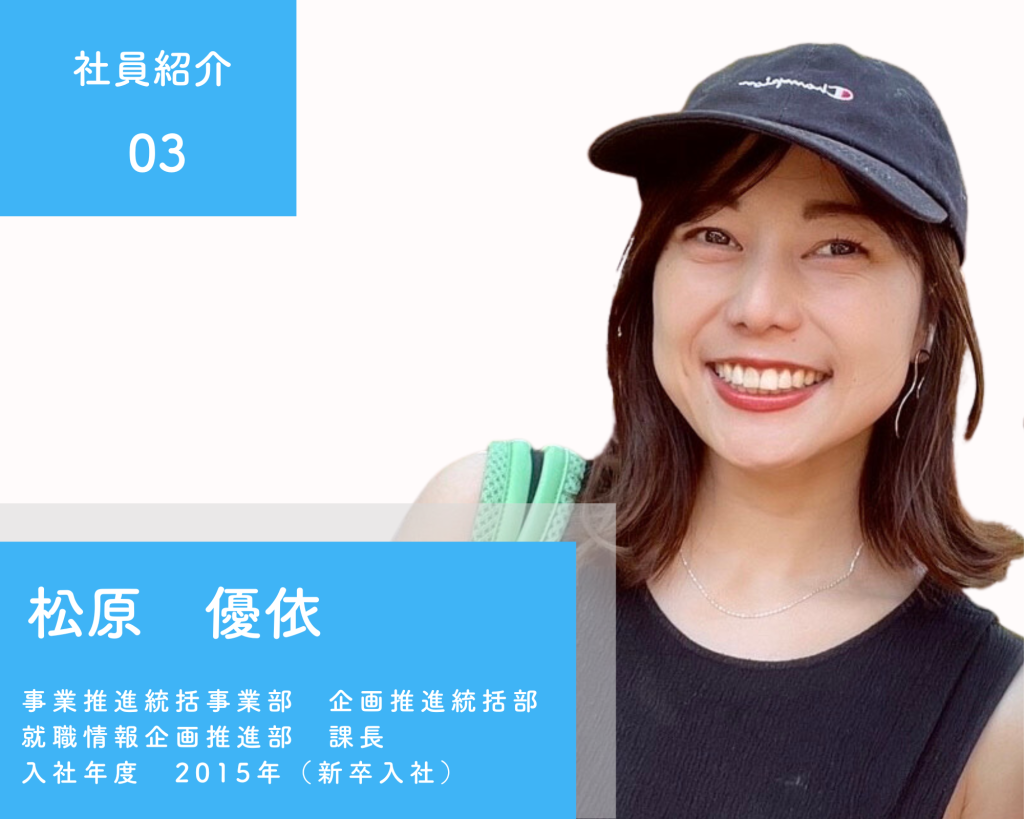 お二人目は、2015年入社の松原優依さんです!横浜支社から企画推進に異動され、活躍されています。今のお仕事やマイナビについてコメントをいただいていますので、ぜひお読みください!