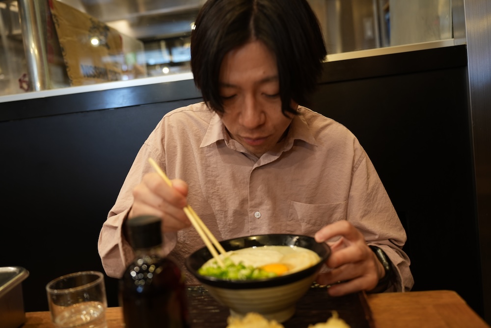 うどんをすする、中村さん