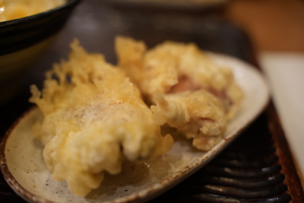 そしてささみの天ぷらも追加でチョイス。このささみの天ぷらはしっとりとしたささみ肉をカラッとした衣で揚がっている最高の逸品です。付け合わせにぜひどうぞ。