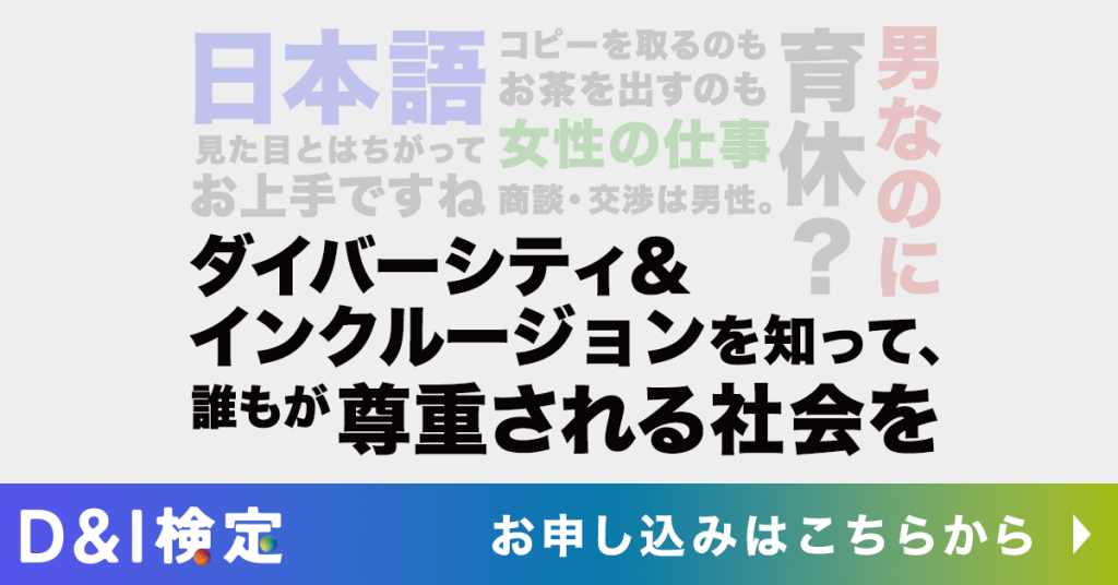 弊社ではD&I検定という教材とテストがセットになっている商品があります!こちら、個人だと8,000円なのですが企業単位でお申し込みいただくと半額でご提供可能です。D&Iの自分ごと化としては非常に良い商品で、社名は言えませんが超大手企業が複数社、全社員への導入が進んでいます。皆様もぜひ!