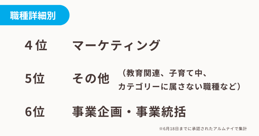 6月18日までに登録されたアルムナイの現在の職種まとめはこのような結果となりました。