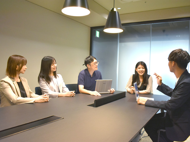 (上の写真左から)T.K/2022年入社、H.F/2024年入社、S.S/2020年入社 C.Y/2016年入社、Y.A/2006年入社
