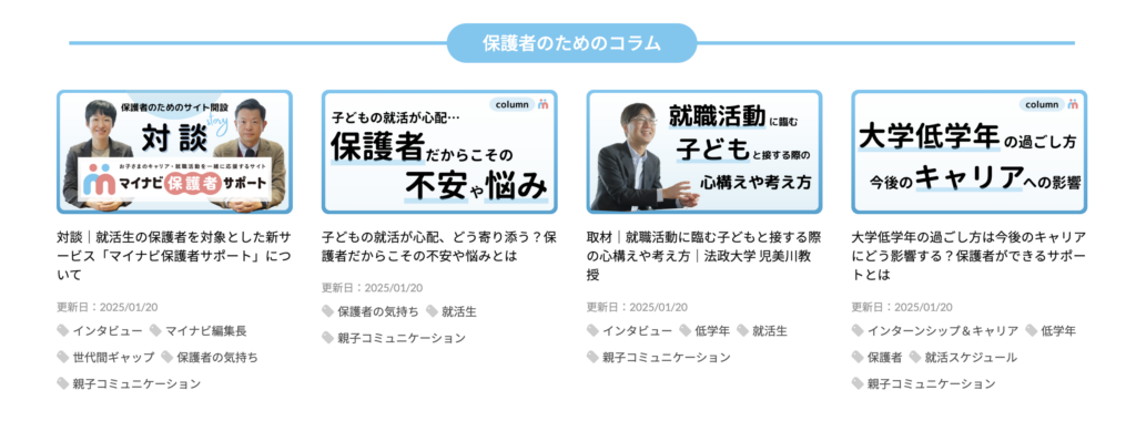 PICK UP 就活生の保護者向け情報サイト『マイナビ保護者サポート』をリリース
