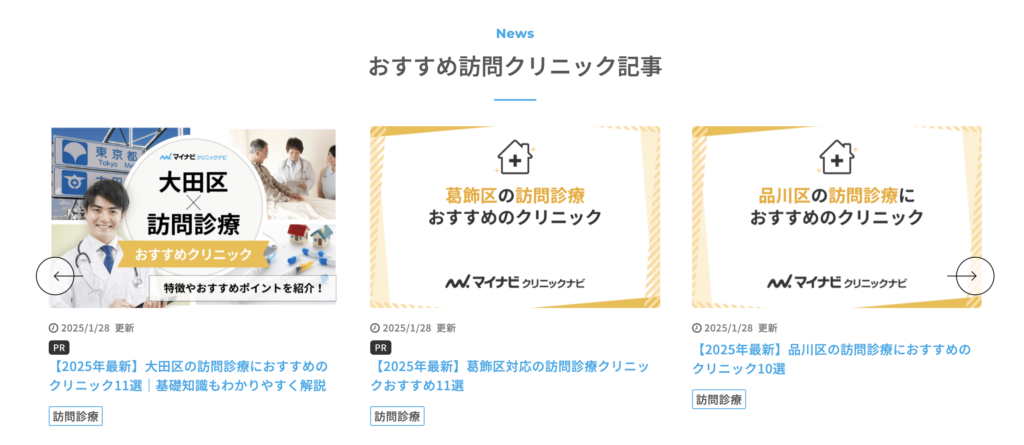 現在、「訪問診療ナビ」では、集患にお困りのクリニックに向けて、院長インタビュー記事やケアマネージャーとの対談インタビュー記事、地域のおすすめクリニック記事への掲載院を募集中です。(記事掲載に関してはこちらをご参照ください)