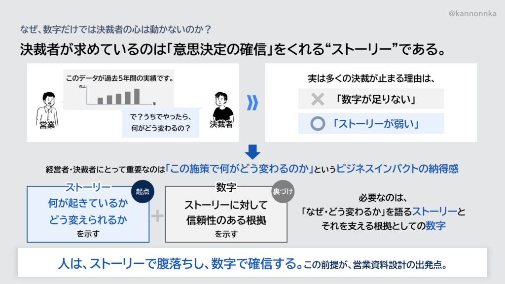 まずはお客様と10人会って話をしましょうとクライアント様にはいつもお伝えしています。お客様の解像度が高くないと本当の意味で売れる企画書にはなりません。テクニックの話はもちろん別にあるんですが、売れる資料を作るためにはまずはお客様に会うことです。