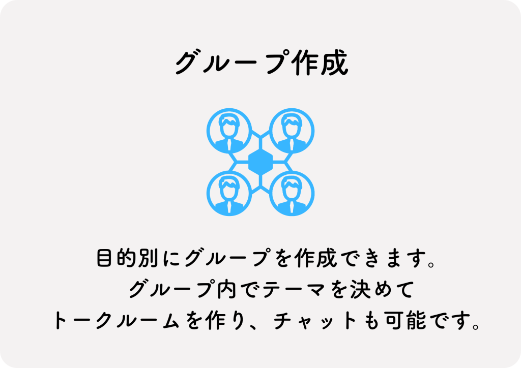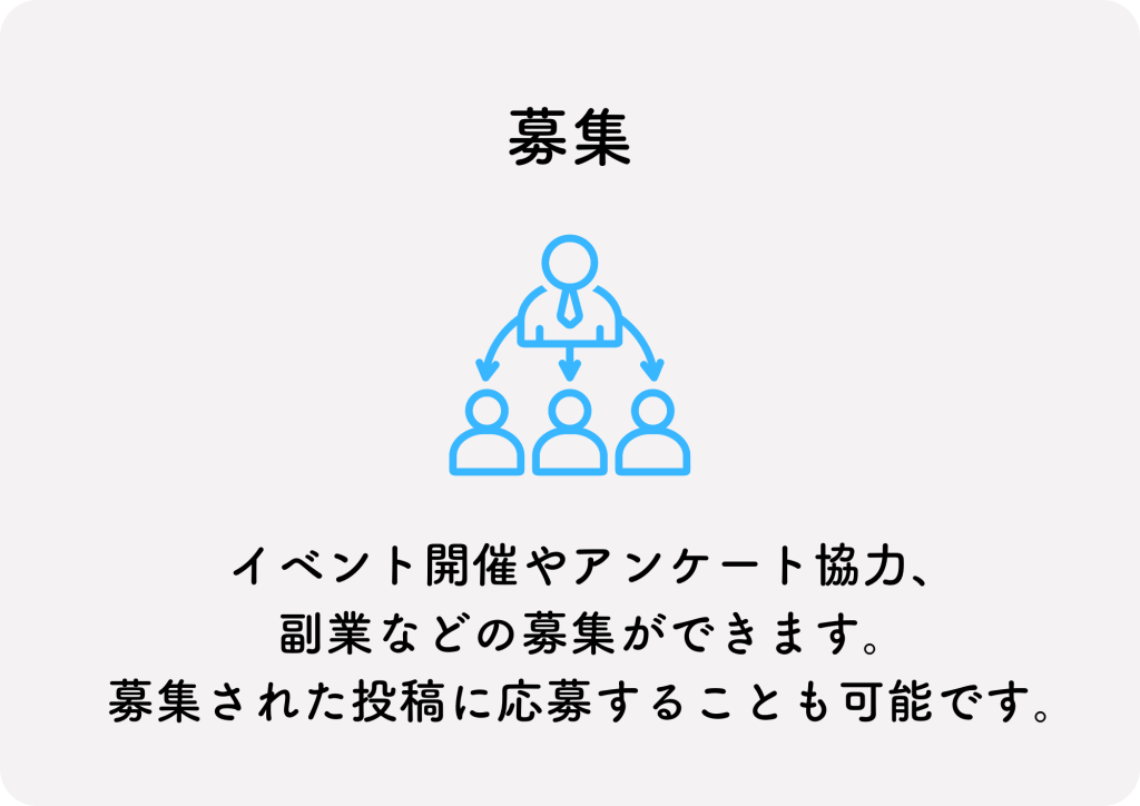 アルムナイメンバーへの情報発信や、仕事の依頼、交流会や勉強会の企画・募集などが可能です。